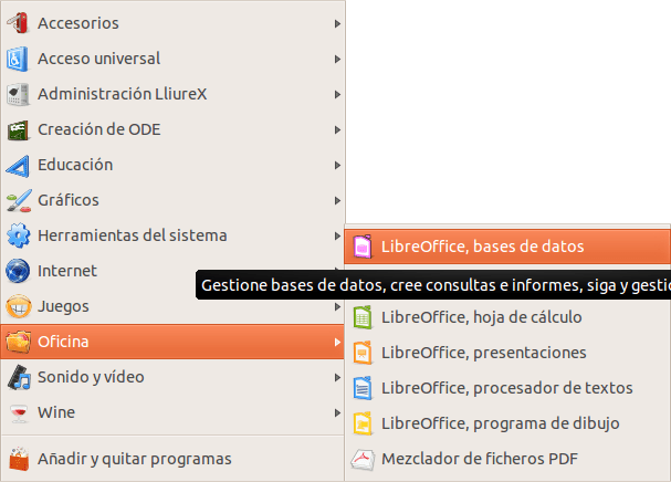 En la Barra de Menú encontraremos todas las opciones del Writer. Empezamos con la opción Archivo del menú en donde podremos crear, abrir, guardar, cerrar y exportar documentos.